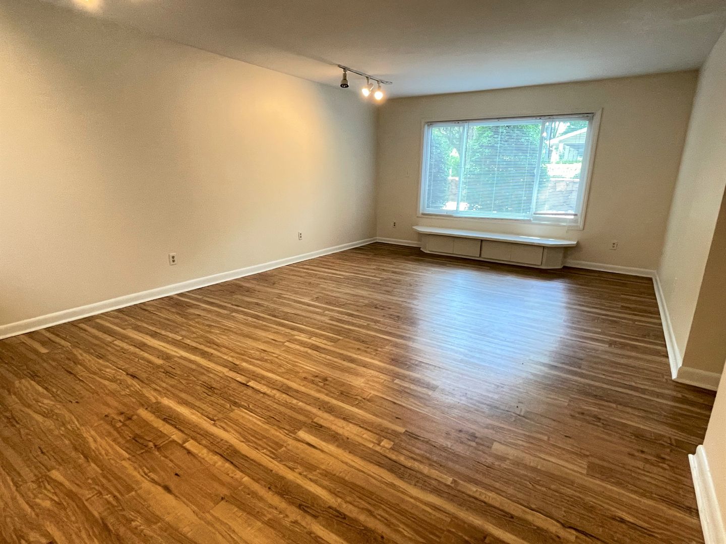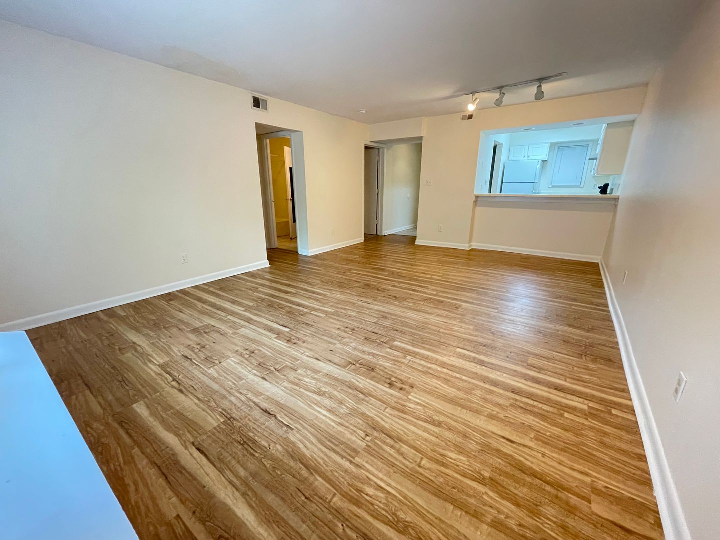 Great garden-style floor plan features open living / dining area. Kitchen has a cool pass-thru window & breakfast bar, great for hanging or entertaining. Unit features wood-style laminate flooring for sleek looks and easy cleaning!