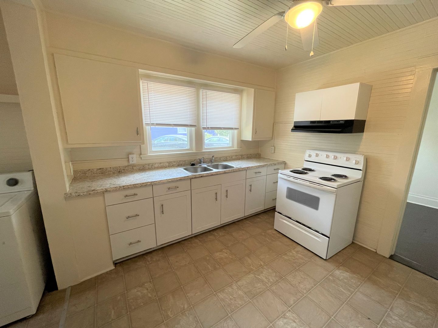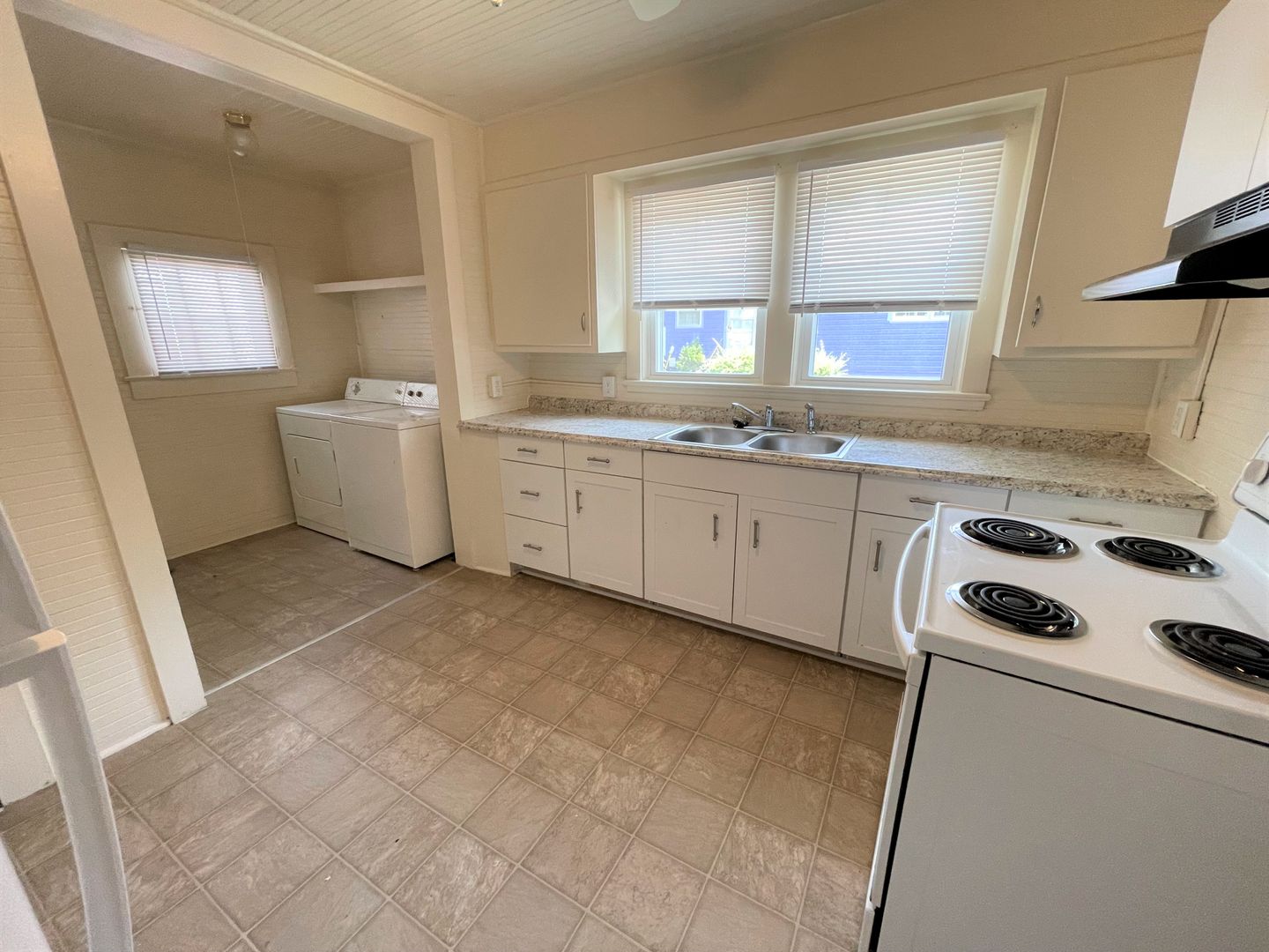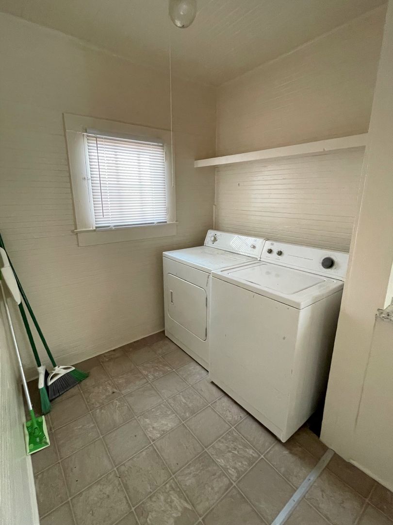Roomy interior offers flexibility with furniture setups. The kitchen is quite spacious and features a separate laundry area that's equipped with washer & dryer, also included. Hardwood floors run through most of the house.