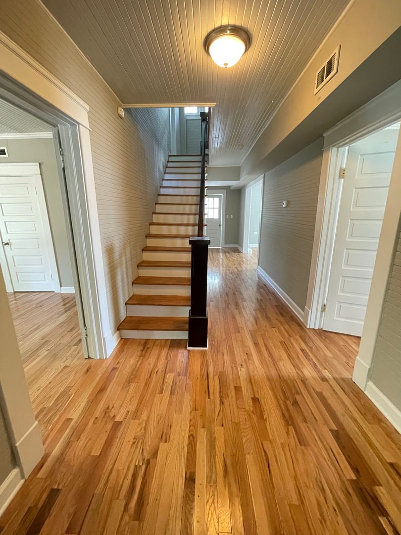 Featuring a completely renovated interior with gorgeous wood floors, beautifully tiled baths, updated fixtures, cabinetry and lighting, renters will enjoy the combination of modern features and old-school vibe! Upon entry, a charming hallway leads you to a common living dining area and modern kitchen, which features granite counter tops, lots of cabinet storage and ample natural light.