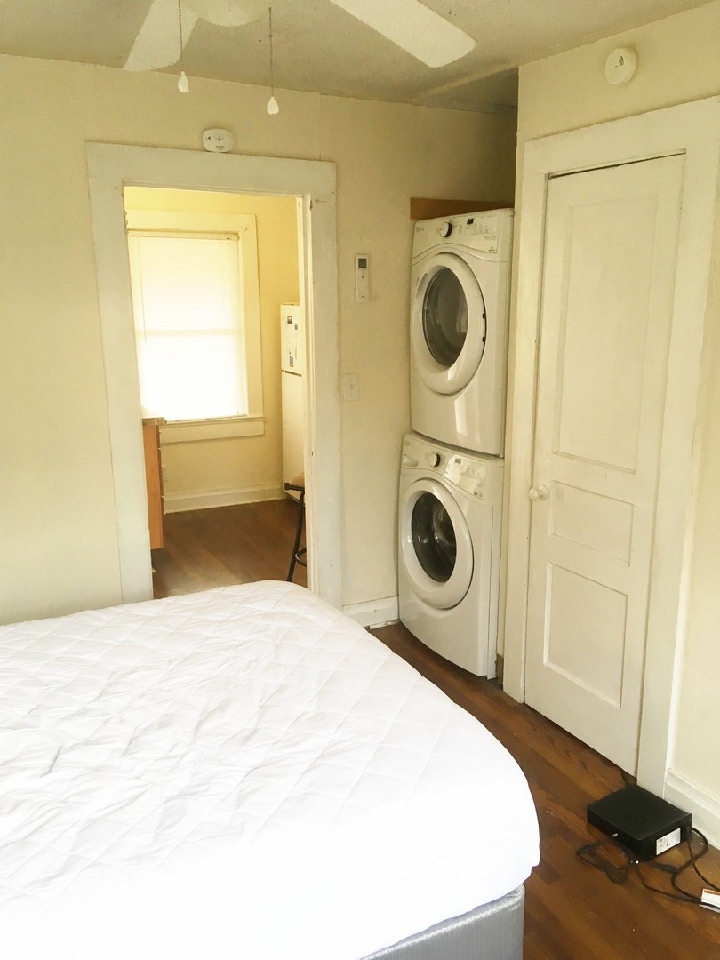 Cool little 1br efficiency-style duplex apartment only 2 blocks from UNC Campus. 1br, 1ba with small combined kitchen and living area. Hardwood floors. Nice little front porch to welcome you home each day. There is also a private parking area in front of the house. Enjoy the convenience of this location, just a short walk from everywhere! Efficient electric heat pump for heating & cooling. Nice washer & dryer included with the rent.