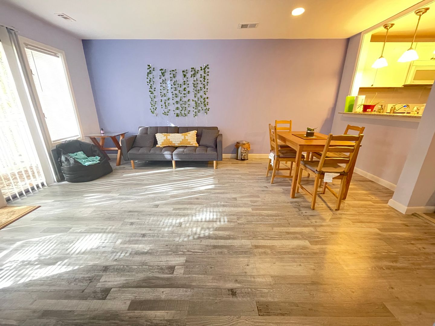 Just beyond the living room and accessible via sliding door is a private back deck, the perfect place to relax after a long day. The bedrooms each have dual closets and windows to let in ample natural light.